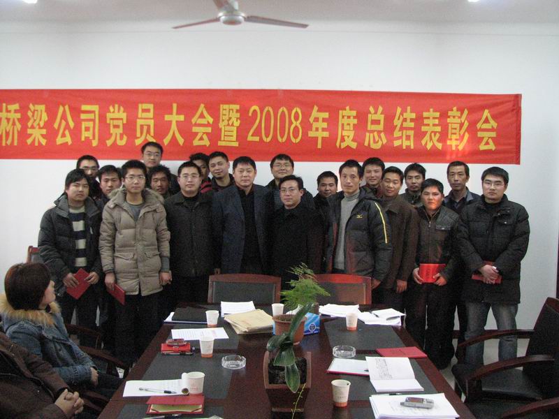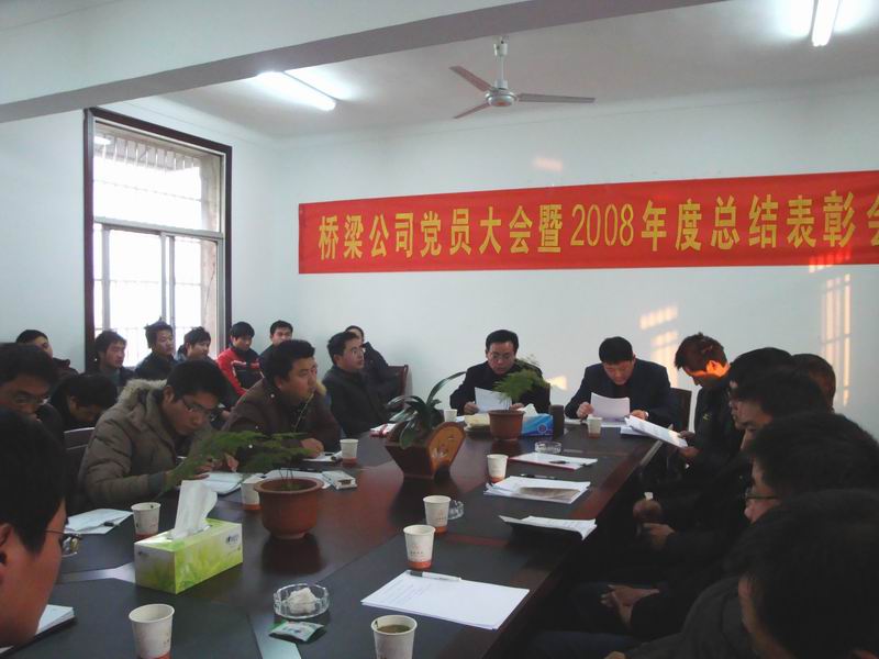 1月18日下午,桥梁公司隆重召开党员大会暨2008年度总结表彰大会。大会对党支部以及桥梁公司在过去一年中的工作作了全面总结,并发展了三位党员,表彰了一批思想积极、工作表现突出的优秀共产党员、优秀共青团员以及先进生产(工作)者。党支部全体党员、入党积极分子及各类先进分子参加了会议,会议由刘振岭书记主持。