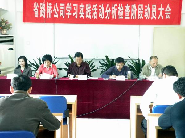 会上,陈书记在动员讲话里首先全面回顾总结了学习实践活动第一阶段的情况。陈书记从四个方面总结了第一阶段的学习调研情况:一、认真筹备,积极动员。公司党委迅速行动,及时召开了党委会议,成立了领导小组及其办公室,研究制定了《安徽省路桥公司开展深入学习实践科学发展观活动实施方案》等指导性文件,并于3月24日上午,召开了学习实践科学发展观活动动员大会。二、创新方式、强化学习。学习实践活动动员大会后,公司学习实践活动领导小组迅速组织实施第一阶段的学习实践活动。一是组织所属各支部书记就如何组织开展学习实践科学发展观活动进行培训;二是以求真务实的作风推动学习实践活动深入开展,及时在网上开辟了学习实践科学发展观专栏,并利用公司内刊《路桥信息》广为宣传,为实践活动营造良好的舆论氛围;三是将《科学发展观重要论述摘编》、《毛泽东、邓小平、 江泽民、论科学发展》发至每位党员手上;四是强化学习,坚持学习规定内容与自选内容相结合、集中学习与自学相结合、学习理论与指导实践相结合,正确处理工学矛盾,创新学习方式,确保学习质量。三、深入调研、解放思想。公司党委把开展调研作为掌握实情、发现问题、破解难题的重要基础,把解放思想大讨论作为对学习成果的检验。一是集思广益,确定调研课题,领导班子在广泛征求意见的基础上,确定了9个调研课题和课题组成员;二是深入基层,广泛调研,公司领导班子成员深入到联系点开展调研,问计于基层,问计于员工,广泛听取员工对公司科学发展的意见和建议,进一步摸清了问题,理清了思路。四、突出实践特色,联系实际到位。在抓好学习的同时,坚持理论联系实践,把学习实践活动和生产经营紧密结合起来。公司领导班子分别就外协队伍的管理与控制、人力资源管理、项目质量管理、市政市场战略定位、项目财务管理、经营管理等方面的问题进行了深入调研,并提出了可行的解决方案,形成了有质量的调研报告。各支部、各项目党小组都始终把学习实践活动同生产经营和企业管理紧密联系起来,做到相互促进。陈书记指出通过学习实践活动的开展,公司领导谋划科学发展的决心、信心都更加坚定,公司上下的凝聚力、干劲大大增强,生产经营形势良好。截至到目前,公司承揽工程6.88亿,同比增长26.7%。同时陈书记还指出了第一阶段学习实践活动中存在的一些问题。接着陈书记对如何做好分析检查阶段的工作提了两点意见。一、要认真抓好三个环节。陈书记对召开领导班子专题民主生活会、形成领导班子分析检查报告、组织群众评议三个环节提出了具体要求;二、要始终坚持六个贯穿始终,一要把活动主题贯穿始终,二要把理论学习贯穿始终,三要把实践特色贯穿始终,四要把边查边改贯穿始终,五要把严格要求贯穿始终,六要把“两不误、两促进”贯穿始终。