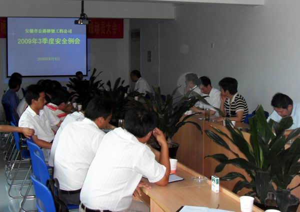 84下午1530——1800,在公司四楼会议室召开了公司09年第3季度安全例会。会议由公司副总经理盛明宏主持。公司安委会成员、直属单位负责人、项目经理及专职安全员共38人参加了此次会议。