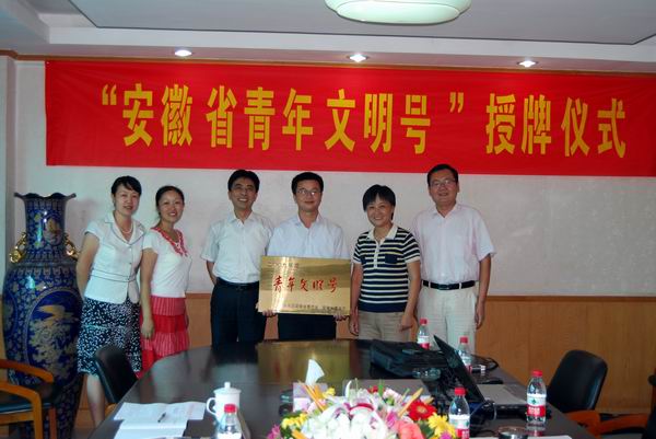 7月27日下午,在公司三楼会议室隆重举行了“青年文明号”授牌仪式,省建设厅文明办王一建主任向获得省级“青年文明号”的六安淠望路大桥项目团支部授牌。授牌仪式由集团公司团委书记邢应梅主持,省建设厅文明办李玲副主任、公司党委书记陈光磊出席授牌仪式。