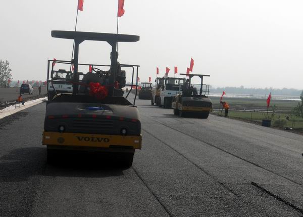 响彻云霄的鞭炮声、耀眼的红旗、灿烂的阳光,共同见证了蚌淮路桥人的风采。此次试验段的成功铺筑,标志着项目部的主体工程施工全面展开,为该项目总体目标的实现奠定了坚实基础。