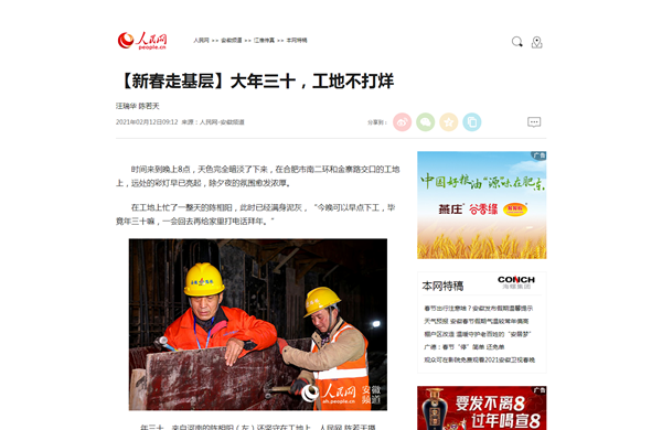 安徽路桥公司承建的畅通二环(西南环)工程是目前合肥市最重要的市政工程之一。自项目建设以来,备受社会各界的高度关注。特别是在春节期间,项目铆足干劲、大干正酣的诸多场景,得到人民网、中国日报、学习强国、安徽卫视、中安在线、安徽网、新安晚报、澎湃新闻、合肥日报等众多媒体的全方位、多角度报道。