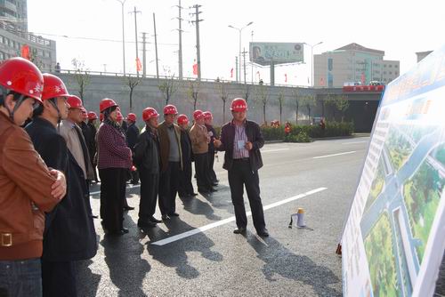 下午三点左右,在项目经理李建成的引导下,观摩团全体成员来到展牌前,听取了项目工程的介绍,详细了解了公司近几年施工的大型精品工程。随后,观摩团沿北二环下穿路面至下穿桥下,观看桥梁施工的成品工程,最后至项目颖河路沥青摊铺现场,对正在施工的项目进行了实地察看。在颖河路摊铺沥青现场,当观摩团得知项目部为了确保工程质量,采用优质的进口的SMA型沥青时,无不交口称赞。
