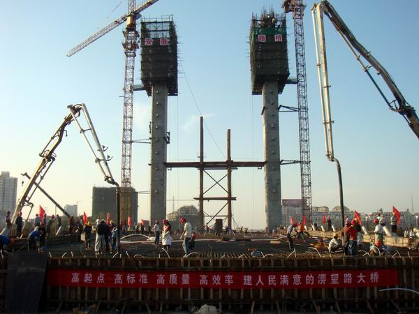 自17日下午15时30分至19日凌晨5时30分,经过现场百余名一线工人和项目部全体技术人员一天两夜无间断连续作业38个小时的艰苦奋战,主桥85m边跨混凝土一次性现浇圆满完成,这是淠望路大桥上部结构施工的又一阶段性胜利。同时,它的浇筑完成也为下阶段斜拉索施工及保证总工期奠定了坚实的基础,这是我们安徽路桥人发扬“特别能吃苦、特别能战斗”精神的再一次生动体现。