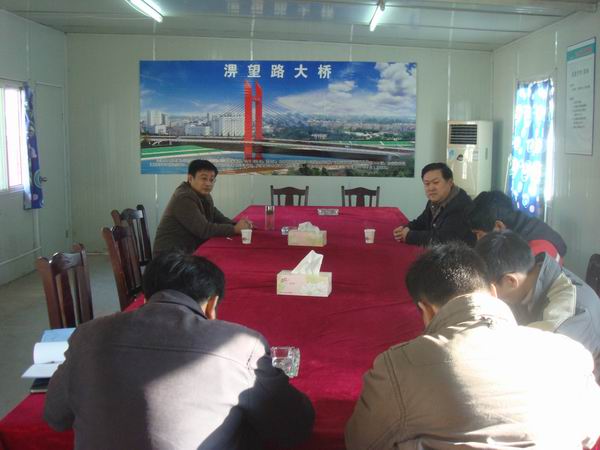 在对施工现场进行实地检查后,在项目部会议室召开了座谈会。郭主任对我部在安全文明施工方面所做的努力与成效予以了肯定和表扬,同时也对检查中发现的不足之处提出了整改意见:一、进一步加强施工现场临时用电安全管理;全面有效地执行规范的技术标准和要求,完善接地、接零和三级漏电保护工作。二、进一步做好高空、水上、临边作业的安全防护工作。三、进一步强化三级安全教育,提高职工对各类事故的防范能力,变事后被动处置为事前主动防范,切实增强企业的安全生产管理水平。