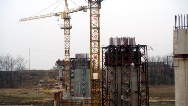 孙局长一行在项目经理梅占胜同志的陪同下,一起走上大堤视察了施工现场,并询问了大桥施工的基本情况。梅占胜一一作了汇报,孙局长听完汇报后,对项目上为了节后上部结构的正常施工而抢抓下部工程施工的计划比较满意,同时指出,三荻路项目市里今年降给予更大的关注,你们要抓紧施工,要注意质量,也要重视安全,尤其是上部施工中的安全。
