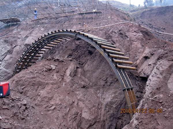 恶劣的自然环境和复杂的地方问题,使雨坝隧道进洞前的筹备工作异常艰辛。项目经理刘晓晗和总工胡学祥数次赶赴业主等单位,反映问题和请求解决问题,并请来各级安全监理到施工现场协商施工队住房场地的选择点。地方办负责人邵子俊同志几乎整日奔波于县指挥部、乡政府、派出所、供电所之间……。功夫不负有心人,在大家多方面的努力下,最终住房场地通过了监理安全的验收,其他标段因村民堵路导致的交通问题、拆迁问题、抢挖煤问题得到解决,施工用电也通畅无阻。与此同时,施工队方面完成所有机器设备的安装和调试工作,前期所需钢材均已全部进场,各班组人员基本到位。现已完成左洞边仰坡开挖和防护,套拱施工、管棚施工正加班加点进行施工,右洞也已进入套拱施工阶段;所有施工工序正有条不紊的进行。至此,雨坝隧道进洞前工作全部完成,同时也宣告了安徽路桥水盘项目的隧道工程取得了阶段性的胜利。
