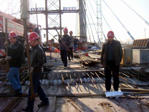 根据年前项目部会议计划安排,节前应完成主跨挂篮悬浇块第十节段的浇筑,然而由于年底大雪天气影响,致使原计划有所推迟。为抢回工期,正月初六项目部员工便全部到岗,立即展开谋划,组织复工。由于作业队外地工人过年回家未能及时全部到岗,项目部人员在江仲明经理的率领下,亲自下工地抬钢筋、穿波纹管、绑扎钢筋,干起了体力活,补上了未到岗工人的缺,使施工速度明显加快。21日晚,在大家的共同努力下,主跨第十节段混凝土顺利浇筑完毕。在节后的六安市建筑工地中我部率先完成了混凝土浇筑工作,在虎年的新春里开了一个好头。六安市《大别山晨刊》报以《部分工人未到岗技术人员顶上去——新春伊始淠望路大桥抢抓工期》为题在头版对我部的事迹进行了专题报道。