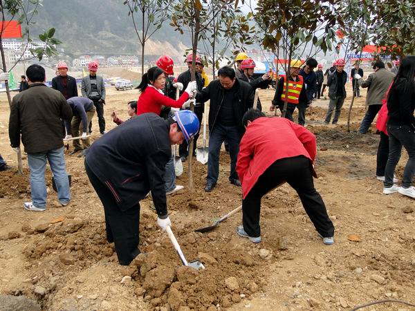“阳春三月植树忙”,2010年3月12日是我国第32个植树节,也是宜巴高速响应国家绿色精神以及指挥部倡导绿化、美化、净化“三化”理念的日子。指挥部高度重视此次活动,省指挥部指挥长宋继宏、省副指挥长王敬平、杜金烈、唐汉春,纪委书记叶道清亲临10标施工所在地进行义务植树。宜巴高速全体战士值此之机,开展了声势浩大的绿化环保活动。我09标项目经理王远胜在10标段举行的义务植树活动中同指挥部领导及兄弟标段朋友一道把一株株雪松、广玉兰放入坑中,并耐心细致地培土、浇水。短短数个小时的时间过后,数百株挺立的树苗拔地而起,像一个个充满生机的绿色战士一样,深深扎根在宜巴的土地上,期待着宜巴战士最终吹响成功的号角。