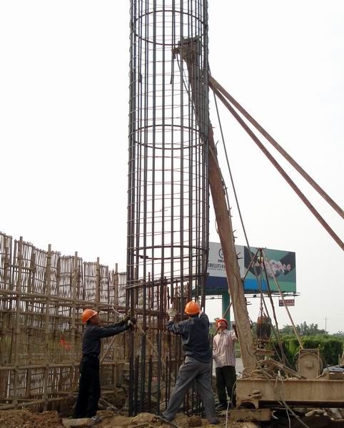 立柱施工的开展,使我部施工又向前迈了一大步。它不仅意味着下部结构施工的全面展开,也是为完成业主下达的年内施工计划打下了一根“硬桩”。