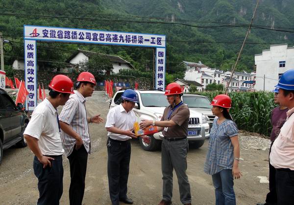 75上午十点,宜巴高速建设指挥部指挥长宋继宏、副指挥长唐汉春、安全处处长余建宜等一行在第二代表处余主任的陪同下莅临我宜巴09标段进行慰问。