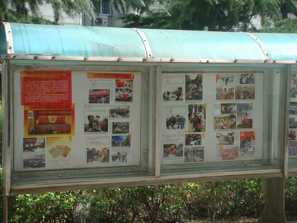 在隆重纪念中国共产党成立89周年的日子里,四分公司党总支根据公司党委的部署要求,积极开展创先争优活动,在后勤基地,利用宣传橱窗,举办创先争优活动宣传图片展,引来不少行人驻足观看。
