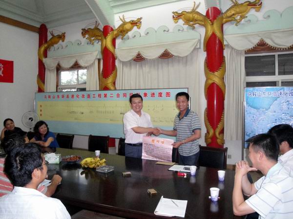 713下午2点半,公司工会副主席胡运春、路面公司党支部副书记李杨、工会副主席姚光群一行来到马鞍山东环02标项目进行慰问。