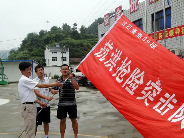 宜巴09标组织突击队抢抓灾后重建 发布时间:2010年07月27日 来源:宜巴09标 发布人: 作者:晏永超 浏览:3876次 为发挥共产党员在灾后重建中的先锋模范和战斗堡垒作用,调动广大青年员工的激情,宜巴09标成立“党员先锋号”、青年突击队和抗洪抢险突击队,抢抓灾后重建工作。 7月23日上午,在项目党支部书记邵建新的组织下,我部在一工区成立以冯嘉佳为队长的青年突击队,在二工区成立以郑刚同志为组长的党员先锋号小组和在项目部成立以陈遥为队长的抗洪抢险突击队,并给各队授旗。邵书记要求项目广大共产党员、共青团员在灾后重建过程中要发挥模范先锋的作用,面对灾情,迎难而上,拿出“与天斗,与地斗,其乐无穷”的豪情,“舍我其谁”的魄力,“顽强拼搏,坚忍不拔”的勇气,身先士卒投入到生产自救一线工作中去,以实际行动影响和感召广大员工,夺取抗洪救灾和灾后重建的伟大胜利。