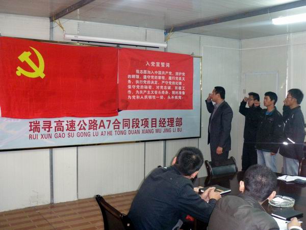 会议开始由党支部书记带领大家学习了公司关于发展党员基本程序的学习材料,使大家进一步了解到公司发展党员的程序。会议的第二项议程是讨论3名预备期已满的预备党员转为正式党员的问题。首先, 3名预备党员分别介绍了自己在一年预备期里的工作、生活中对党的认识以及学习情况。7名正式党员分别对3名预备党员的优点和不足进行了指正,并希望其能在今后的工作生活中发扬优点,克服不足。之后,7名正式党员进行了无记名投票。3名预备党员均以全票通过转正,成为正式党员。最后,代书记带领3名预备党员在党旗下进行宣誓。