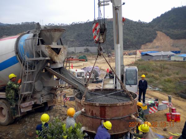 1122,我江西大广B1标第一孔桩基(水下灌注桩)正式开始灌注。项目工程部经过精心的施工计划和准备,历时4个小时,第一孔桩基顺利灌注完成。