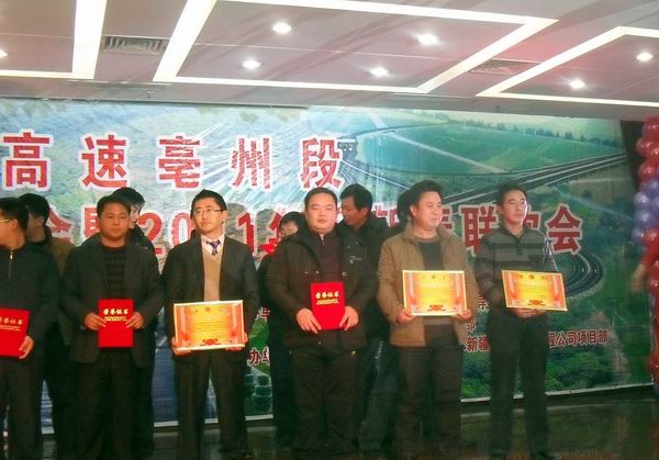 2011121,泗许高速公路亳州段建设办举办了2010年度总结表彰会。会上,泗许高速公路亳州段建设办主任马祖桥对2010年度泗许高速公路亳州段全线工作进行了全面的总结,并对优秀个人及集体进行表彰。我泗许01标荣获2010年度优秀项目部称号。