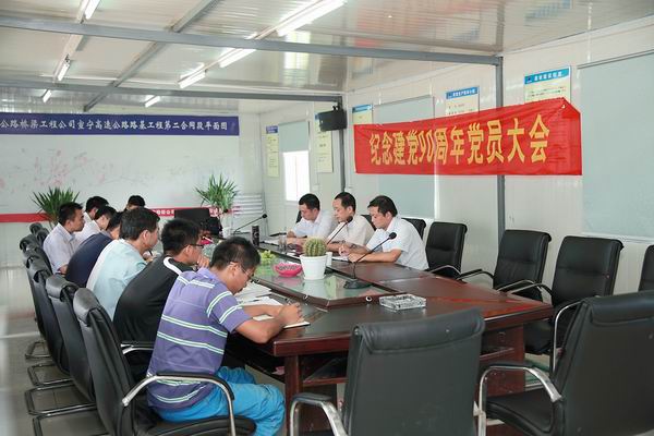 在中国共产党成立90周年之际,宣宁高速02标项目部于7月5日召开党支部大会,项目经理余跃、项目支部书记王秋华等全体党员以及入党积极分子参加会议。四分公司党总支书记汪家富、工会主席张扬到会指导。