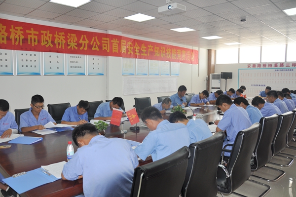 7月23日下午,市政分公司“识隐患、辨风险、保安全、促生产”首届安全生产知识技能交流竞赛在裕溪路高架三标项目成功举办。来自分公司所属项目33名分部分项工程师、安全员参加本次交流竞赛活动,分公司经理王明礼、总工程师张玉明、公司安全生产部王勇等到场指导。