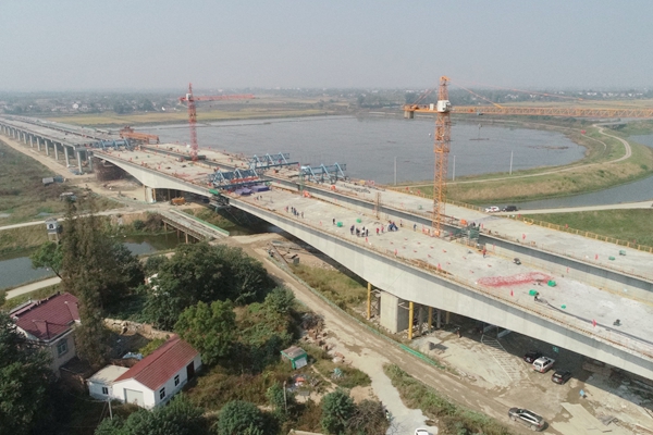 特大桥全长1372米,主桥为变截面挂篮悬浇连续箱梁。作为项目重要节点工程,工期紧、安全风险高、施工组织难度大。项目在建设中严格落实业主要求,合理配置资源,严把安全质量关,发扬连续作战精神,推动项目建设不断取得新成绩。
