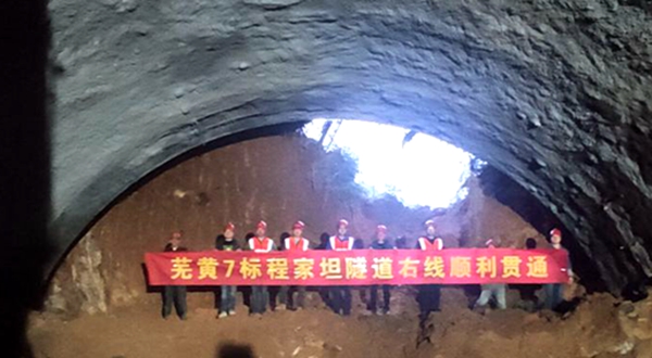 近日,芜黄高速07标程家坦1#隧道右线顺利贯通,这是项目全面复工后首条贯通的隧道,吹响了大干快上加速施工生产的号角。