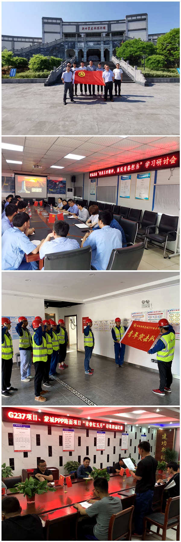 泾县PPP路面项目团支部组织青年团员参观新四军史料陈列馆、新四军军部旧址和皖南事变烈士陵园,重温中国共产党领导中国人民取得胜利的光辉斗争史,缅怀革命先烈,接受红色文化洗礼。舒城三里河路面项目组织开展“弘扬五四精神 践行青春誓言”主题团日活动,团员青年共同回顾五四运动历史,就自身职业发展和如何继承发扬五四精神进行座谈交流。G237项目联合蒙城PPP项目组织开展红色诗歌诵读活动,用别样的方式表达团员青年对祖国的深爱之情。