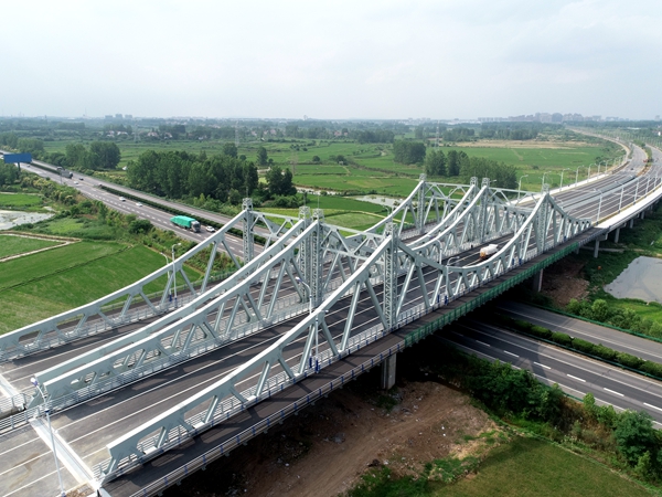 该项目是滁州市与来安县的连接线,道路标准定位为城市快速路。自项目建设以来,项目部紧盯时间节点目标,严控施工质量,精心部署推进施工。过程中,项目部科学调度,提前谋划,有效克服了雨季洪灾、新冠肺炎疫情等困难带来的不利影响。在不中断高速交通的情况下,成功运用纵向前移结合横向平移多点牵引式顶推施工技术,顺利完成了钢桁架梁安装,积累了顶推施工的宝贵经验。