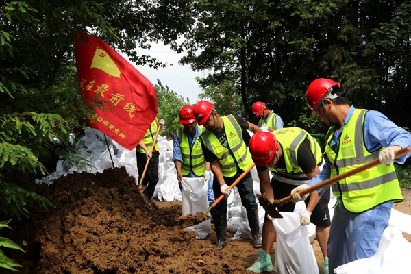 在抢险救援一线,党员先锋队、青年突击队的旗帜高高飘扬,路面公司领导班子带队奋战一线,挥锹挖土,装袋筑堤。经过连续24小时的奋战,最终筑起一道“安全堤坝”。