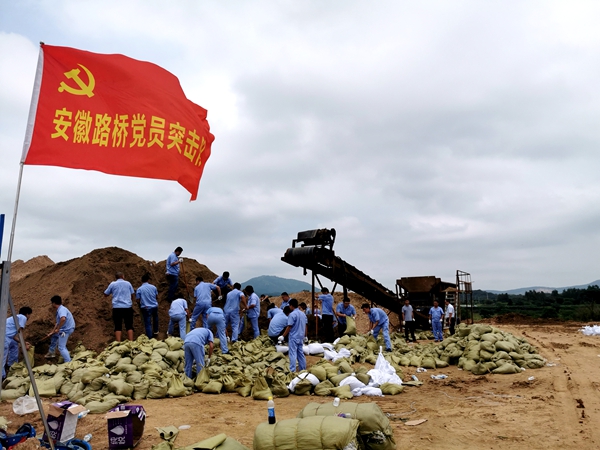 【抗洪抢险进行时】安徽路桥环湖大道杭埠河抗洪抢险队筑坝固堤连续作战超30小时