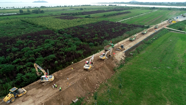由安徽路桥市政分公司轨道交通4号线、引江济淮新桥大道、徽州大道等项目组成的三支抗洪抢险队,260多名职工在150多台机械设备的配合下,在环湖大道杭埠河区域执行筑坝固堤任务,已连续作战超30小时。目前,大坝被提升4.5米,填筑水稳3440方,级配碎石8126.4方,风化石5024方,搬运沙袋12000余袋。