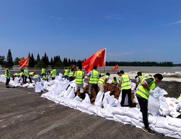 近日,受巢湖水位上涨影响,巢湖南岸支流白石天河水位暴涨。为应对白石天河险情,安徽路桥马院桥项目、郭柯路项目组成联合抗洪抢险突击队,紧急赶往庐江县马塘村白石天河段进行抢险。此次抢险共调动人员30余人,大型装载机两台,装填沙袋1000余只,筑堤50余米,排除两处险情,有效保障了当地村民的生命财产安全。