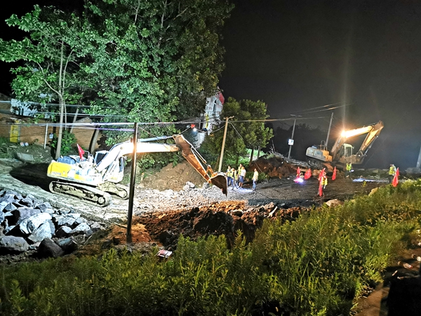 【抗洪抢险进行时】徽州大道项目抗洪抢险突击队连夜抢修清水河应急防汛通道
