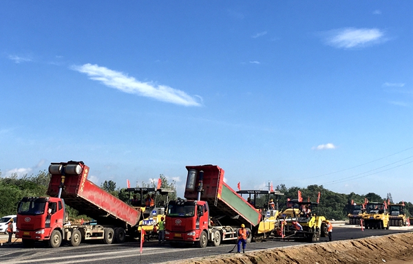截止目前,项目已完成路基水稳摊铺7.97千米 、沥青摊铺4千米、钢结构制作2600吨、箱梁125片、系梁193道、盖梁106座,为完成年度产值目标奠定了基础。