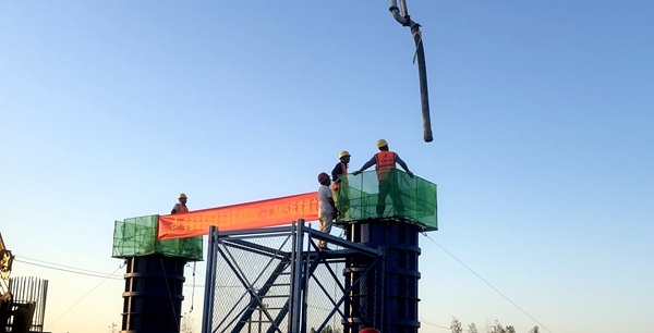 池河大桥作为项目控制性工程,桥梁全长550米,原定计划搭设漫水桥作为便桥。受7月份连续强降雨影响,池河水位全面上涨,无法进行漫水桥施工,且河两岸均为软基,对桩基施工影响极大。项目及时调整思路,创造条件,调集路基队伍抢修池河大桥段便道,从两头向中间推进,借助部分村村通公路,有效保障了施工机械和罐车通行。为确保钢筋笼制作进度,对桩径和桩长一致的部分优先施工。截至10月10日,池河大桥施工已累计完成93%,目前已转入桥梁承台及墩柱施工阶段。
