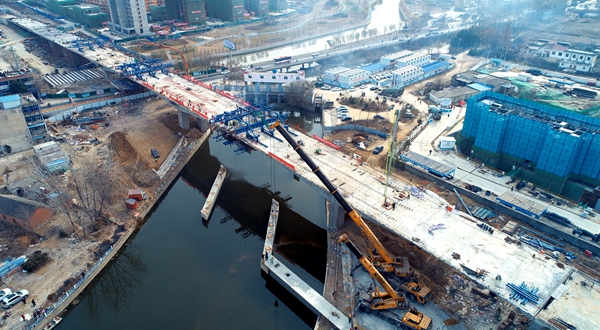 一桥飞架泗州,通途横贯东西。12月16日,随着中跨合龙段混凝土浇筑完成,公司承建的皖北县城第一高架---泗县玉兰路高架桥主桥顺利实现合龙。