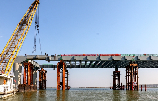 固蚌高速02标浍河特大桥主桥钢梁顺利合龙