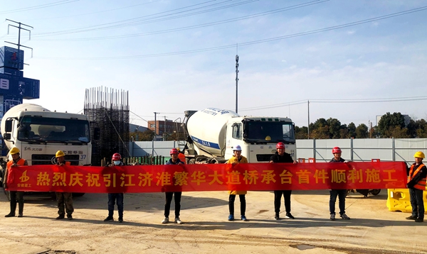 首件承台浇筑 繁华大道桥项目节前取得重大节点突破