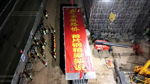提前20天 南二环架起全线主线桥首片钢箱梁