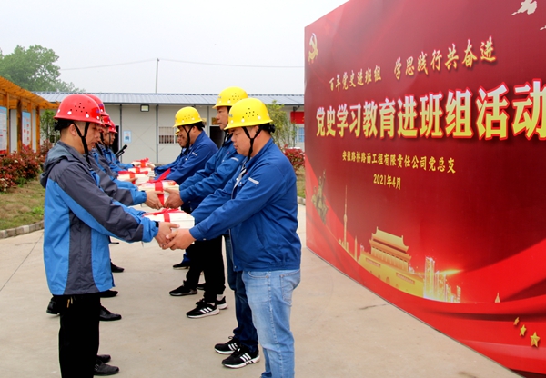 活动中,路面公司党总支为班组党员代表赠送了党史学习教育指定用书,全体党员重温了入党誓词。路面公司党总支书记余跃、青年委员肖必忠分别以《党史学习教育的根本遵循》《弘扬大庆精神 继续艰苦创业》为题,开展党课宣讲,介绍了党史学习教育的学习内容和方法,宣传弘扬艰苦创业的“大庆精神”,教育引导广大党员鼓足干劲,推动项目高质量发展,以优异成绩迎接建党一百周年。