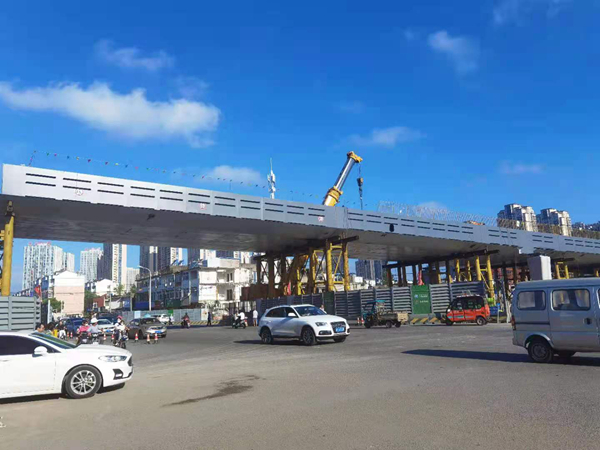 攻坚克难,党建引领。郎溪路(裕溪路-明皇路)01标党支部始终将党建工作深度融入项目生产管理中,通过开展“大干有我,有我必胜”和“我为群众办实事”承诺活动,充分发挥党员的先锋模范带头作用,引导项目全员投入到项目大建设中去,为项目的施工生产注入了强劲的红色动力。在跨临泉路钢箱梁吊装施工过程中,面对临泉路口交通人车流量大,箱梁运输线路复杂等问题,党支部成立党员突击队。支部负责人带队对箱梁运输的几条道路进行实地考察,提前做好规划,并对接交警部门,选择了最安全快速的运输线路。4名党员带头,组织人员在深夜临时封闭临泉路口,提前3个小时,赶在上班早高峰前,完成了钢箱梁吊装施工,最大程度减少了对周边群众出行的影响。