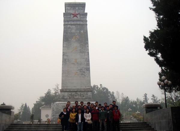 金寨是红军的故乡,将军的摇篮。金寨县革命烈士陵园是融博物馆、纪念堂、革命烈士纪念塔、红军墓为一体的大型陵园,是全国重点烈士建筑物保护单位。清明之际,烈士陵园庄严肃穆、松柏凝翠、杨柳吐绿,在料峭的春风中,大家向革命烈士纪念塔敬献了花篮,并肃立默哀,向烈士们致以崇高的敬意,表达深切的怀念。祭扫结束后,大家还参观了革命博物馆、烈士纪念堂。一幅幅陈旧的老照片,一件件革命烈士遗物,无声地述说着烈士们当年艰苦朴素的生活作风和宁死不屈的爱国精神。